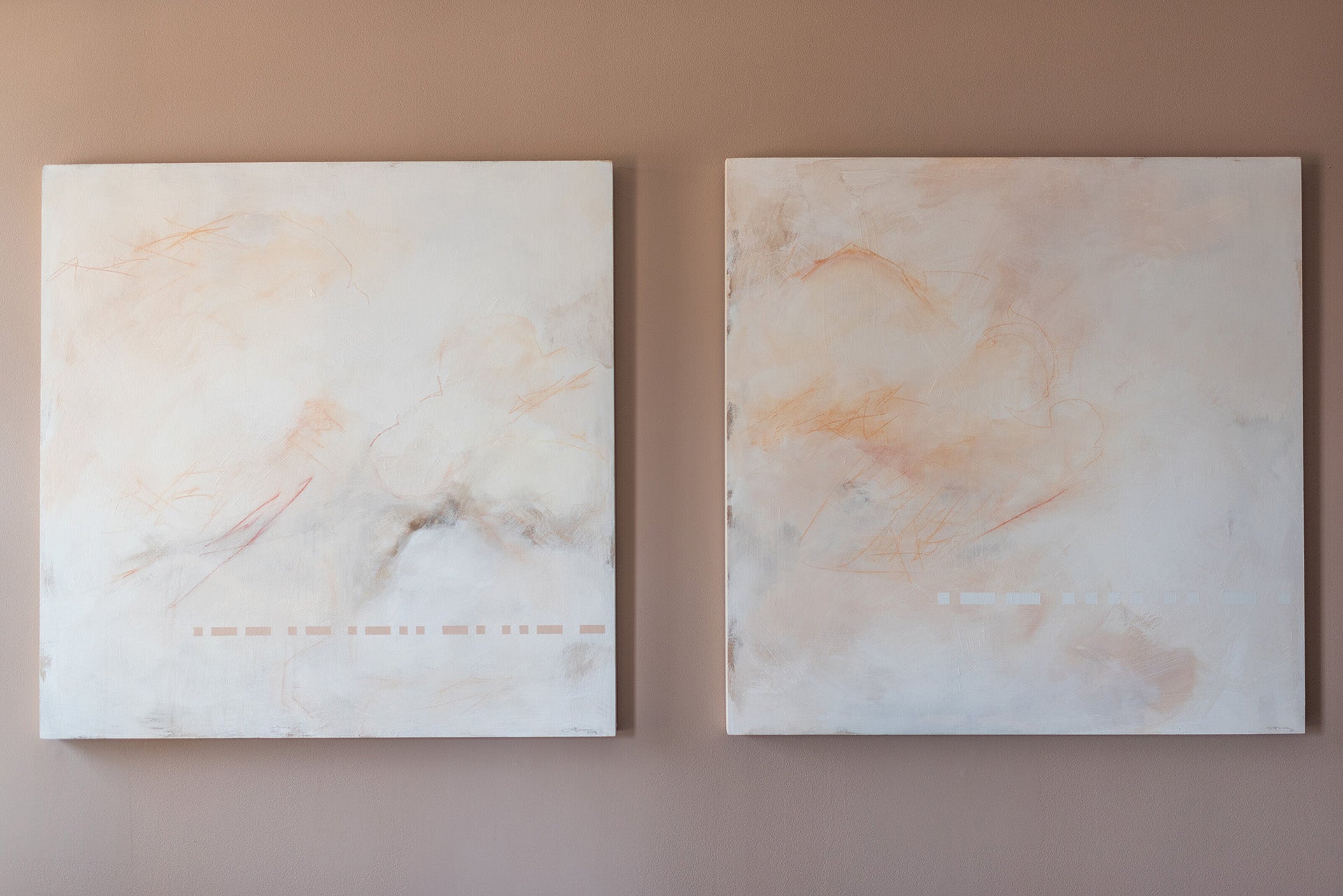 When do brush strokes become representational or do they always remain brushstrokes? Painting with intent to represent a subject requires deliberate acts of mark making and in the end it is still a painting. How do we artistically represent something which is already abstract? Can we paint a cloud - that object so abstract we look for familiar shapes in them even as they shift and change? Who is to say what is a brush stroke and what is a cloud? The same can be said about pattern and design. Morse Code is a series of dits and dahs which communicate while adding a bold design that may be viewed as just that.
